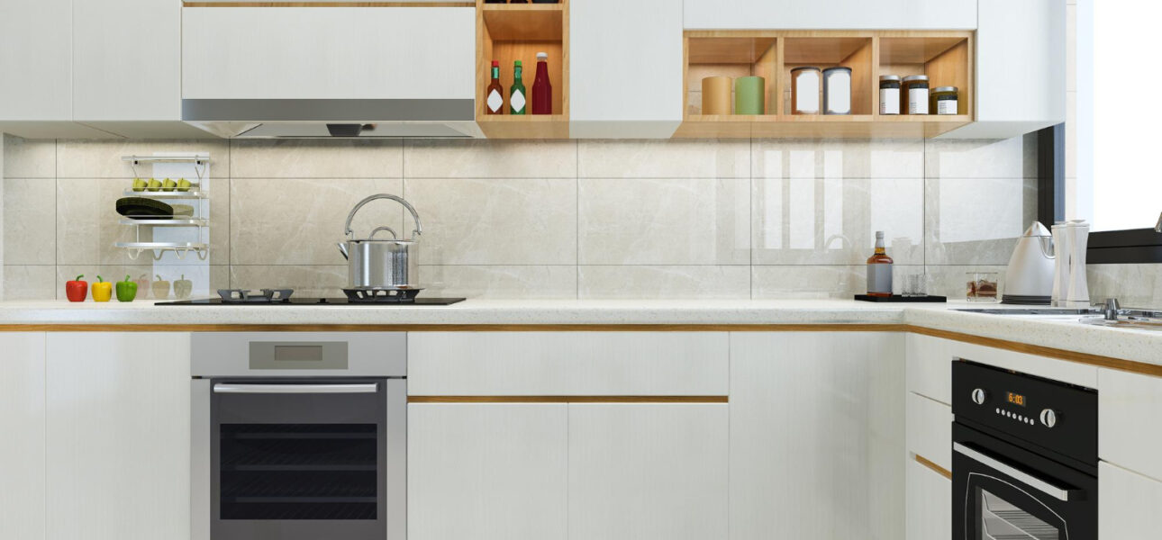 Installed floating shelves in living room